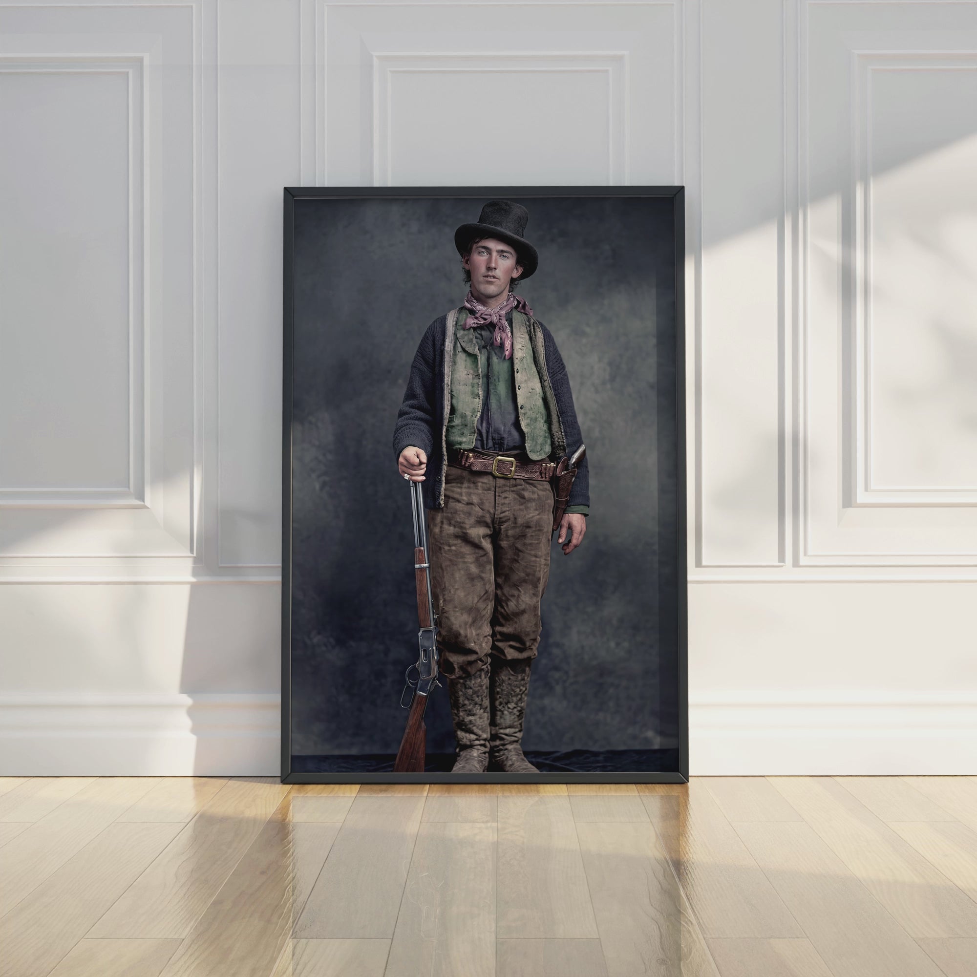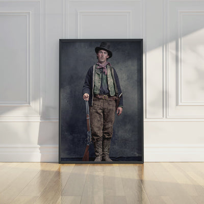 This iconic image that captures the famous Old West outlaw Billy the Kid (also known as William H. Bonney, Henry McCarty, and Kid Antrim) has been recreated and colorized from the original circa 1880 photograph attributed to Ben Wittick. This western print adds character to any room and makes a great gift.