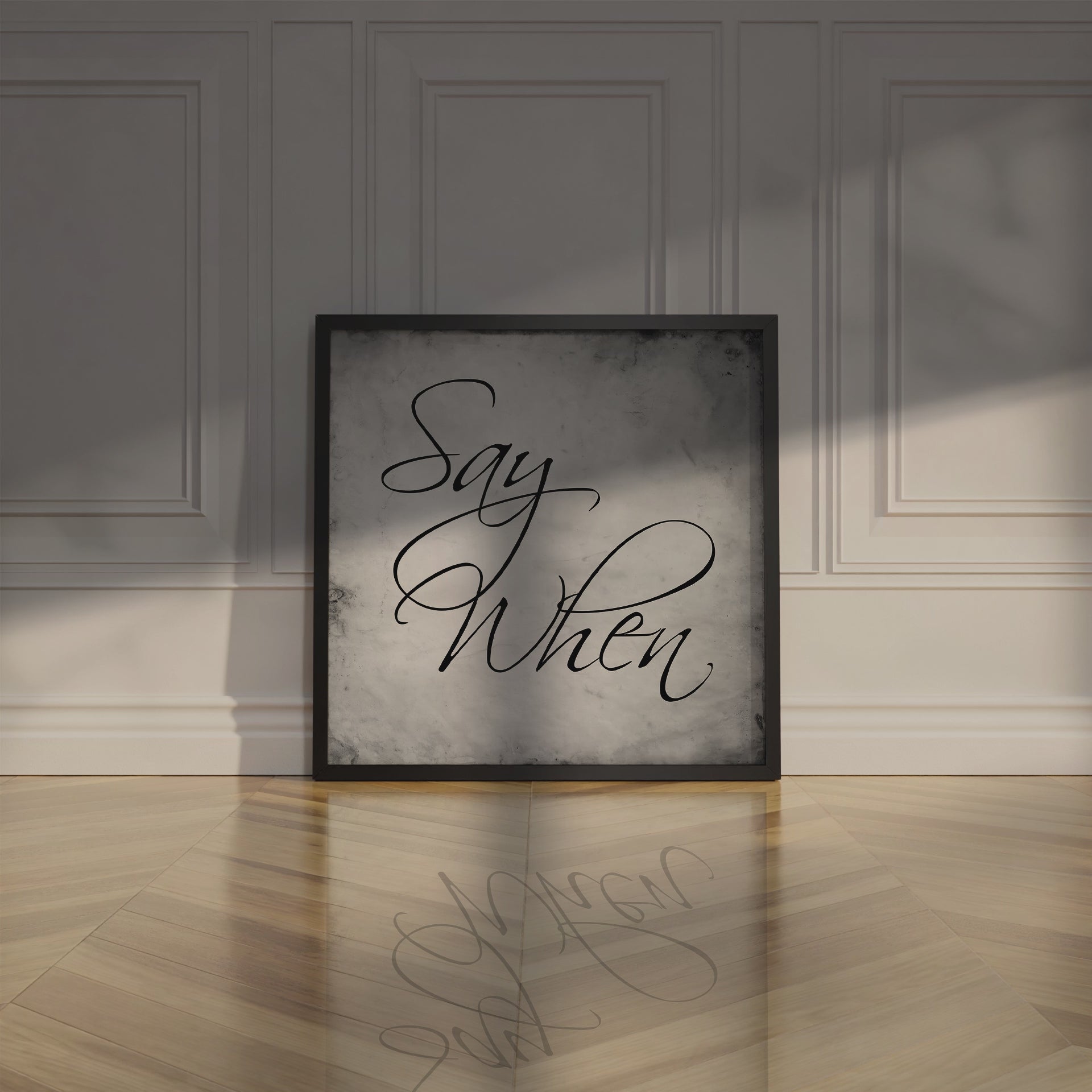 Inspired by the Doc Holliday and Johnny Ringo scene in the movie "Tombstone", the quote "Say When" exemplifies the spirit of the Old West and American frontier. This word art print adds character to any room, and makes a great gift - in your choice of chalkboard or vintage black and white paper design.