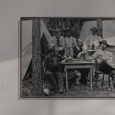 Union Officers Playing Cards: Civil War Soldiers - Vintage Black & White Photograph (Art Print)